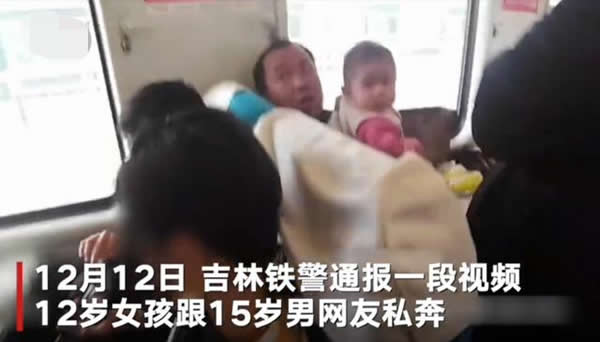 12月12日,吉林铁路公安发布一段视频,铁路乘警在重庆至吉林K1574列车上发现一男一女两孩子独自出行,随后经询问得知,他们竟然是在“私奔”。