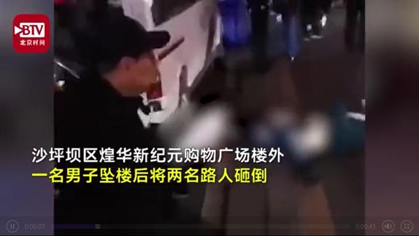 今日12时许,重庆市公安局沙坪坝区分局就此事通报称,12月24日20时20分许,一男子从沙坪坝区三峡广场一公寓楼高坠,砸到两名行人,三人经抢救无效死亡。警方初步查明,系暂住该高层公寓楼的31岁男子李某跳楼自杀所致,排除刑事案件,目前正进一步调查处理。