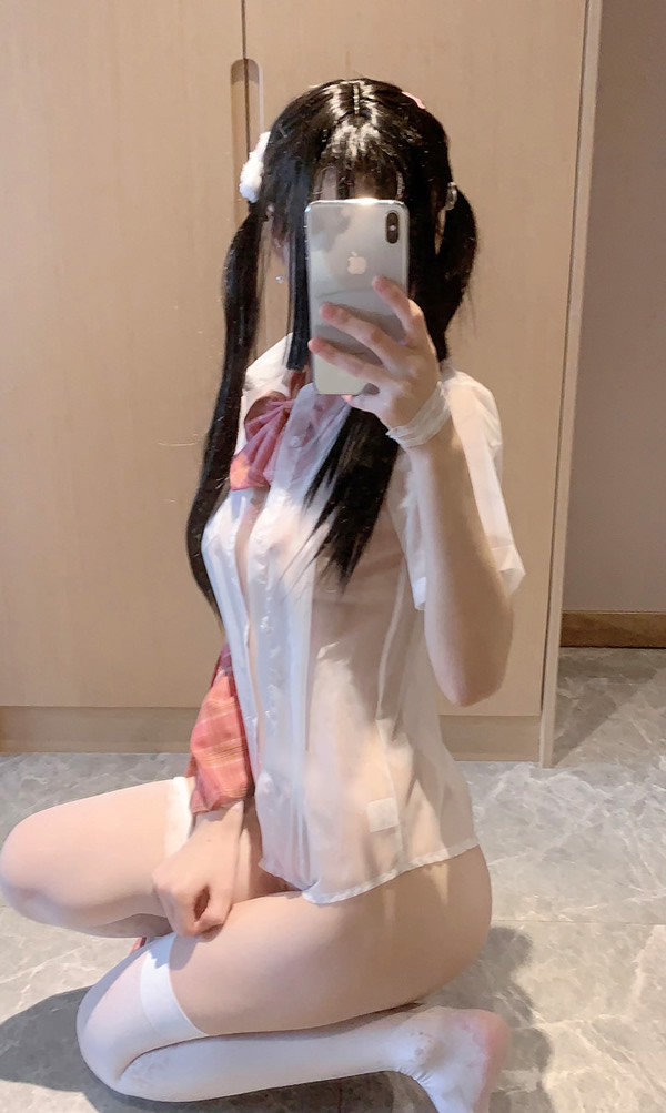 软妹子H工口赛高酱私定无圣光粉白色透明制服