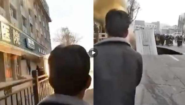 实拍青海路面突然塌陷公交坠入爆燃现场视频