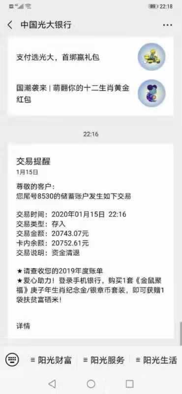 1月16日上午十点多,一位杭州的e租宝受害人收到了她的退款!