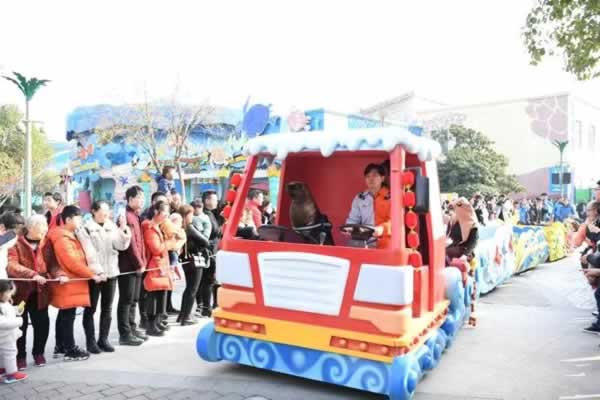 本次“动物大巡游”可谓是“众星云集”, 覆盖了海陆空三栖的三十余只动物明星参与巡游,并与游客亲密互动;公园还特别为它们专门打造了“极地新春专列”,寓意奔向欢乐祥和的新一年。