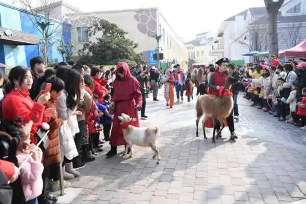 巡游中打头阵的是由小香猪和龙猫组成的“生肖接力小队”(龙猫学名毛丝鼠,是毛丝鼠科),以年度生肖的身份,传递着新年的美好祝愿;紧随其后的是由山羊、驼羊、骆驼等温顺乖巧的动物组成的“陆地方阵”,它们时而昂首挺胸大步向前,时而来到观众身边卖萌耍宝;最后压轴出场的是涵盖了“海陆空”三个方阵的“极地新春专列”。“海洋方阵”的海狮当起“司机”有模有样,开着专列拉着同阵营的几个可爱的企鹅宝宝;“ “空军方阵”全体成员在队伍最后坐阵,频频放声高歌......现场一片热闹欢腾的景象。