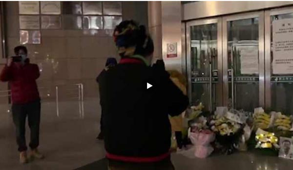实拍民众自发哀悼李文亮大妈数度哽咽视频