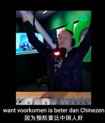 相关节目由荷兰电台Radio 10播出,歌词大意是,冠状病毒是“肮脏的中国人带来的,想要不被感染,就要远离中餐”。