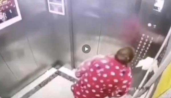 实拍重庆一大妈不戴口罩还朝电梯吐口水视频