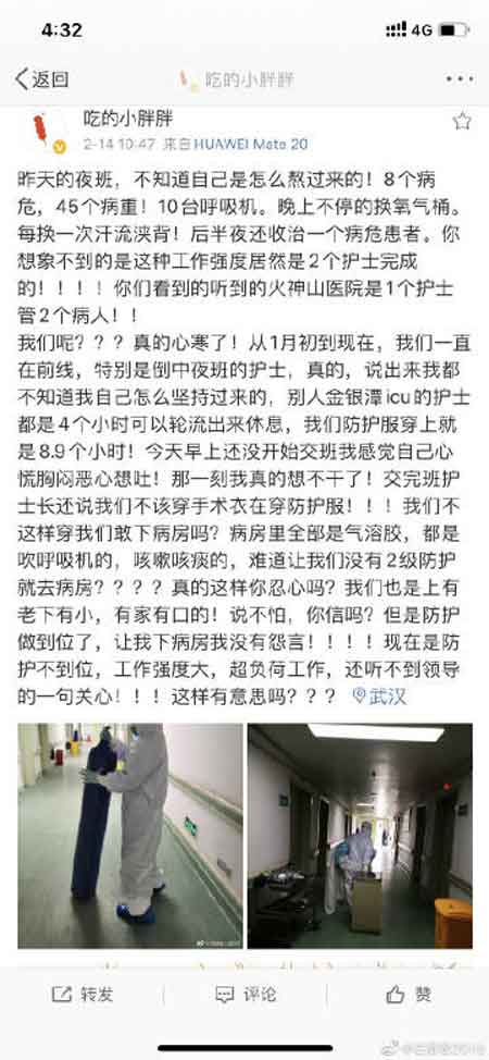 类似武汉九院这种,在角落里长时间作战,又不太会哭,“奶”显然供应不足,组织管理层面人才也是欠缺,苦活累活干了,露面的机会都没有,甚至连官媒上那些打气鼓劲的话都没精力去看了吧