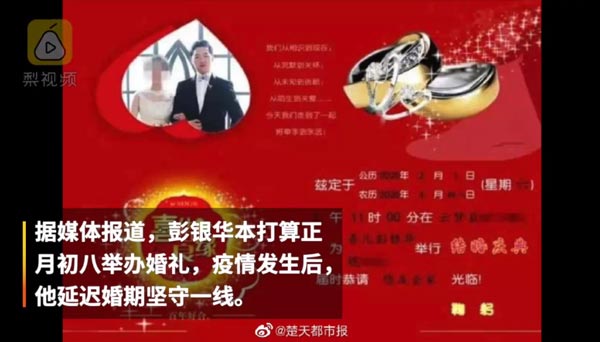 实拍推迟婚礼的医生彭银华感染新冠肺炎去世视频