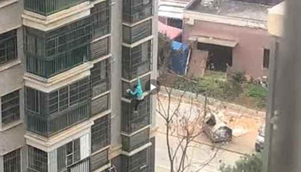 网传武汉一女子为出门买肉从8楼墙外爬下视频