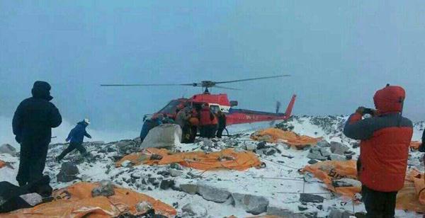 Ada、博士、子君也在这里。了解情况后才知道,麦子、柳青、雅玛桑还有一名队员骨折,Ada、博士和子君头部有受伤,其他队员都有不同程度的受伤。这个十几平的帐篷里面挤满了受伤的人。怕有余震再次引发雪崩,一晚上都坐着椅子上没有怎么睡觉,几个人挤在一起相互取暖。终于熬到天亮,五点多钟就有直升飞机来接伤员,天气很差,能见度不高,三个小时了,也就来了六七架飞机接送伤员。愿他们能够得到好的救治。继续在大本营等待,放心勿念。
