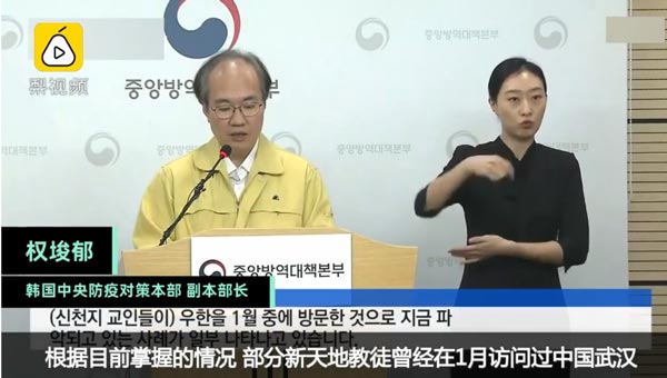 韩国中央防疫对策本部副本部长权俊旭3月1日在新闻发布会上首度证实:部分新天地教徒曾在1月去过武汉,但目前还不清楚人数有多少。目前韩国的确证病例中,有超过1500例与新天地教会有关。