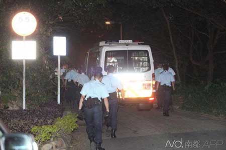另一方面,大队机动部队警员,连夜赶赴飞鹅山道和白花林路现场,展开地颤式搜索,并在飞鹅山道11号外设置临时指挥中心,曾一度封锁飞鹅山道上山方向马路,以便警方登山及在附近一带搜证,所有车辆均不能经鹅山道上山。至今日凌晨4时10分,警方解封路面。目前仍有有多辆警车停在扎山道了望台,继续搜寻在逃绑匪。