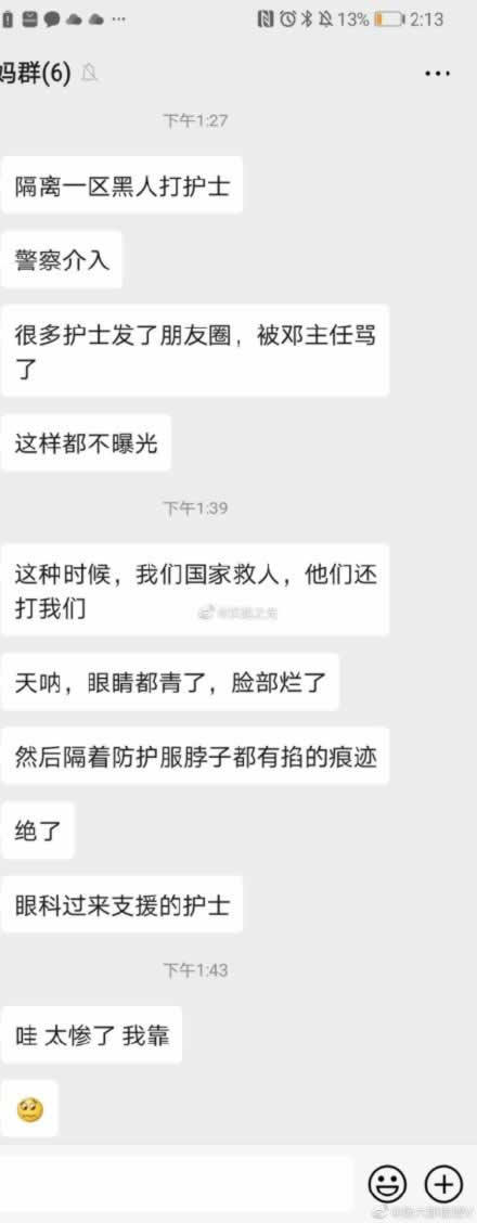 经初步调查:当天7时20分许,市八医院隔离病区女护士汪某请一外籍新冠肺炎确诊患者OKONKWONWOYE CHIKA PATRICK(男,47岁,尼日利亚籍)抽血检查,该患者不予理睬,还紧随其后试图强行走出隔离病房。