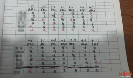 小莉说,由于与医院签订的合同没在自己手上,她向记者提供了医院的排班表。记者看到,她的班最远已经排到4月12日。