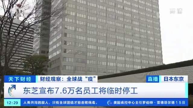 在这样的背景下,日本大型综合制造商之一的东芝公司昨天宣布,除了与电力、铁路以及电梯等基础设施相关的维修业务照常进行外,位于东京的总部和日本各地工厂的所有员工,原则上从本月20日开始到5月6日为止将临时停工,一共涉及大约76000人。