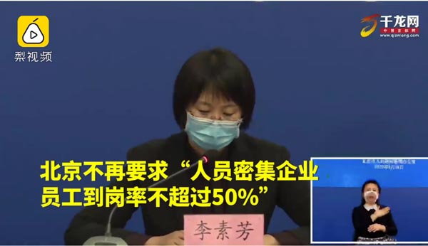 4月18日,北京市发改委副主任李素芳介绍,不再要求“人员密集的企业员工到岗率不超过50%”。对已有物业统一管理的综合性场所,不再对入驻单位进行重复的防疫措施要求,无需签订疫情防控相关责任书、承诺书等文书。