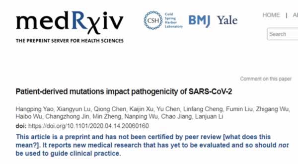 4月19日,中国工程院院士李兰娟团队在预印本平台medRxiv上发布了未经同行审议的新论文。论文指出,新冠病毒已经出现了能够切实影响致病性的突变,药物和疫苗研发工作有必要把这些突变纳入考虑。