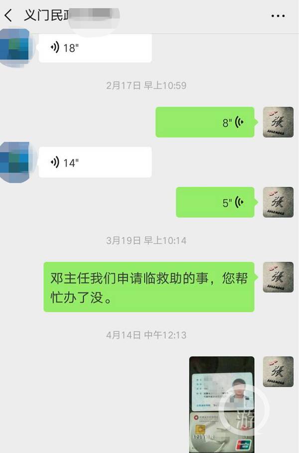“我找过涡阳县民政部门的领导,被告知国家临时补助已经全部发送到义门镇。并根据镇民政委员的要求,已经在4月初将身份信息和银行卡信息通过微信发给了他。就是不安排。”张先生说。