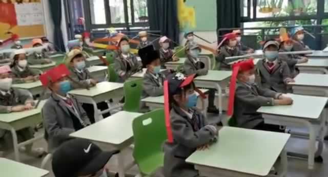 今天,一到三年级小朋友正式开学啦!一大早,养正小学一组可爱的照片在家长群中刷屏:小朋友们戴着可爱的“一米帽”,开开心心上学去。浙江新闻客户端记者联系上养正小学副校长洪峰,洪校长笑着解释说:“这确实是我们的创意,用我们的提倡的话来说就是:头戴一米帽、保持一米距。”