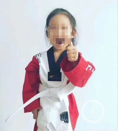 ▲女童受伤前身穿跆拳道服的照片。图源于网络