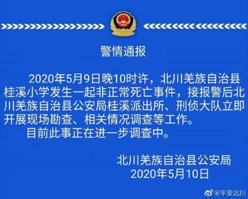 (原标题:四川北川一小学发生一起非正常死亡事件,警方开展调查)