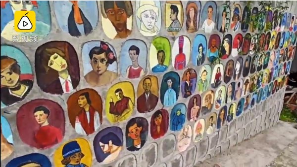 湖南浏阳。刘同学学习油画已经有10年的时间,今年因为疫情无法返校的他在石壁墙上留下了近百幅肖像油画,把这里变成了“拍照打卡地”。他说,画这些前后耗时4个月,每幅要画四五十分钟,开始是因为宅在家想练练手。