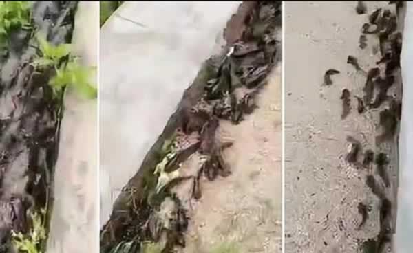 5月18日,广东潮州市某池塘里上千条鱼跳上岸的视频,引网友热议。有网友认为,这是地震前兆。5月20日,潮州市应急管理局和地震局等相关单位人员,进行实地考察。经地震台调查,近日该区域内没有小震纪录。5月21日,潮州市应急管理局发布调查结果,鱼成群上岸是天气炎热和池水水质差所导致,排除震前宏观异常。