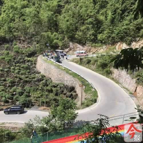 据目击游客介绍,5月23日下午2时许,景区旅游观光车将长生洞的游客接送下山,在拐弯路段,旅游观光车失控,撞向路旁的山体。
