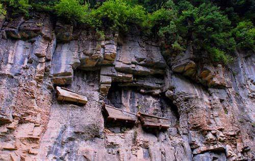 悬棺葬,是把殓尸棺木高置于临江面海、依山傍水的悬崖峭壁上的崖壁、洞穴、裂隙的一种丧葬习俗,广泛分布于中国长江流域及其以南地区,在东南亚乃至太平洋群岛也能看到。由于存在大量未解之谜,这种古老而奇特的丧葬习俗,也包裹着一层厚厚的神秘色彩。