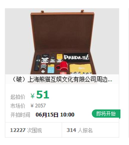 6月3日,上海熊猫互娱文化有限公司在阿里拍卖上线了一批福袋等拍品,起拍价51元起。据悉,此次拍卖所得款项将用于公司破产清算。