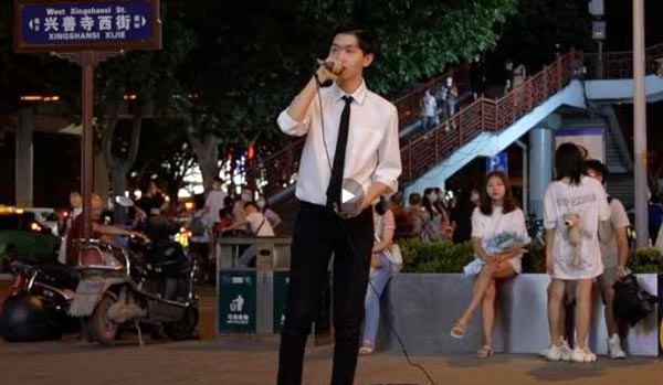 实拍大四男生街头唱歌赚生活费担心找不到工作视频