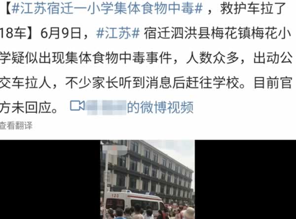 据网友爆料,6月9日,江苏省宿迁市泗洪县梅花镇中心小学疑似发生食物中毒事件,多名学生被送医。