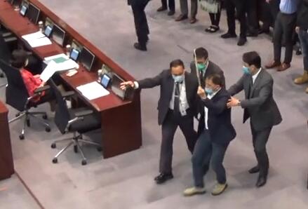 “修例风波”持续1年之际,一些反对派议员又开始挑事。综合香港“东网”、香港《文汇报》等港媒报道,6月12日下午,香港立法会内务委员会在召开会议前夕,多名反对派议员包围主席台,在台前举起标语并高喊口号。