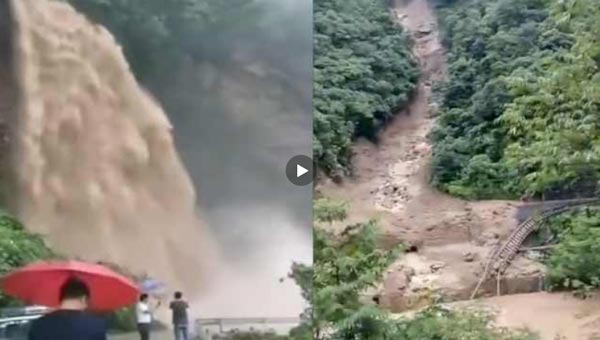 实拍重庆或现80年来最大洪水铁轨被冲断视频