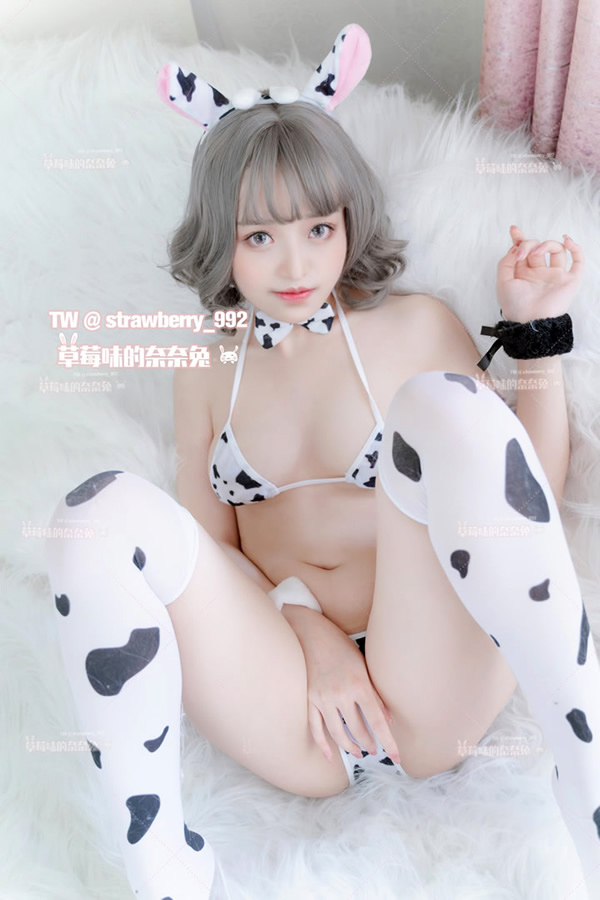 推特小姐姐草莓味的奈奈兔定制-奶牛