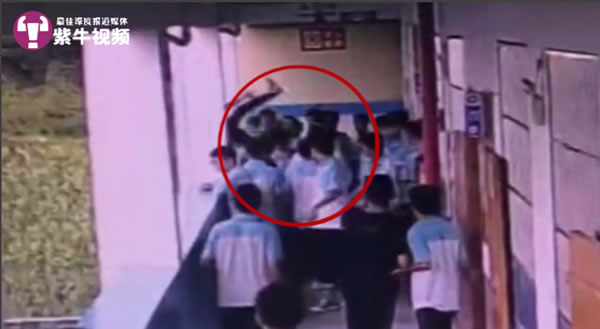 此事发生在2019年9月16日,紫牛新闻记者从受害人韦某父亲韦先生提供的视频中看到,在该校四楼的廊道上,学生人来人往。突然之间,一名身材高大的白衫男同学一手揪住另一名身材较矮小的黑衣男同学脖子,一手伸向裆部,双手一用力,将其托起后,从四楼栏杆处扔了出去,并跌落至一楼地面。随后,现场出现一片混乱。而该同学坠楼后,肇事同学往楼下看了一眼,便转身离开。