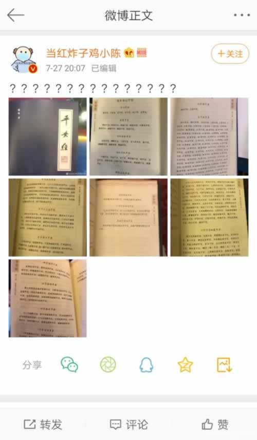 7月27日晚,有微博网友晒出7张图片,内容为一本名为《平安经》的封面照片以及书里内容照片。