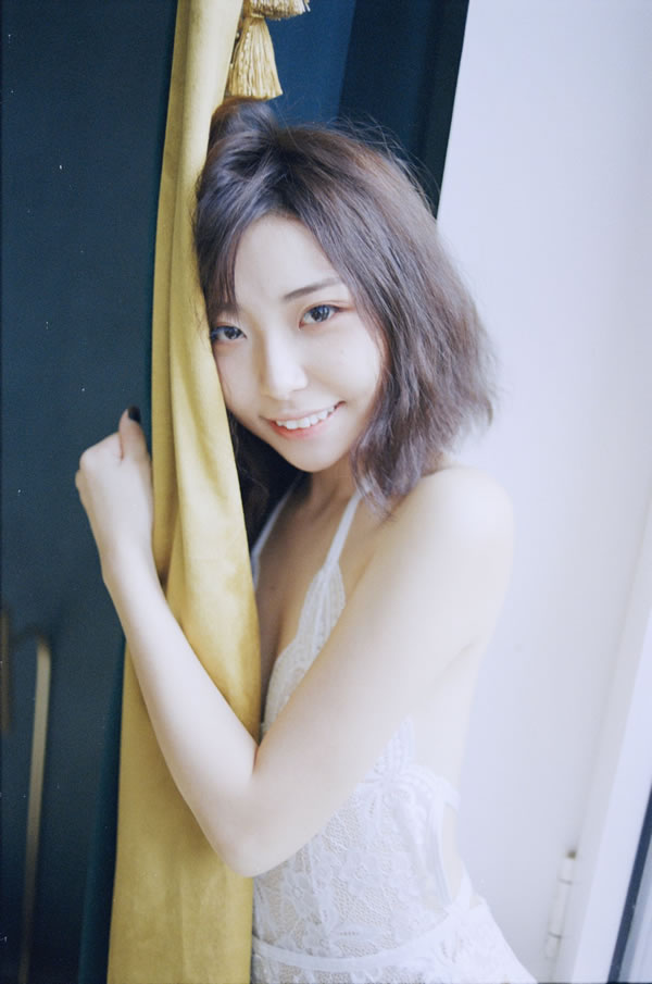 清新美女Leesnoww白色皱褶裙黑内衣居家写