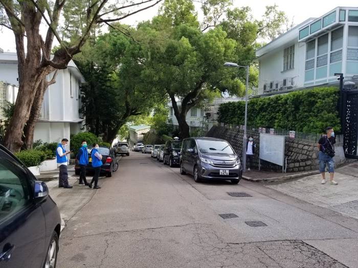 有7人车停泊在黎智英的住所外(图片来源:香港“东网”)