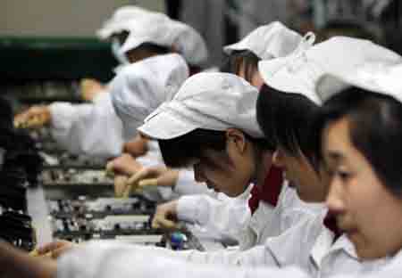 深圳富士康,工人正在流水线上工作。 东方IC 资料
