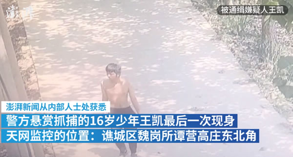 8月29日,安徽亳州。16岁少年涉重大刑案在逃,警方悬赏十万。当地一内部人士称,受害者邻居介绍王凯因七夕要钱不得将婶婶杀害,警方在王凯家墙头发现清晰的血脚印。