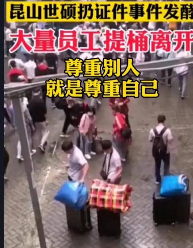公司大门口,不少员工背上自己的行李,提桶离开。甚至还有很多在里面工作的网友拍视频,表示因为这件事,厂里已经空无一人,生产间也无法运行,生产线直接瘫痪,损失惨重。