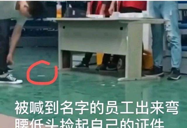 颐指气使:发工作证竟直接扔地上,让员工蹲地捡