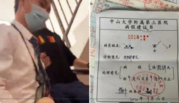 该员工表示,自己9月16日在医院确诊为抑郁状态。