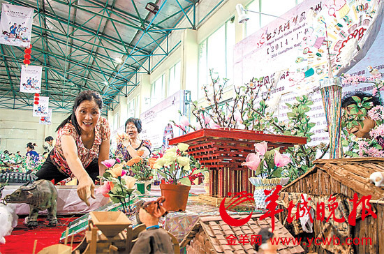 2014 广州乞巧赛艺会正如火如荼地进行,此次大赛是乞巧民间工艺在广州的第一次盛会,除了久负盛名的珠村、黄埔等传统巧姐队伍,还涌现出男子乞巧团队、残疾人团队、小学生团队和职业学校团队。传统与现代、专业与民间、老与少、男与女之间的角逐,令得本次赛艺会相当“有睇头”。