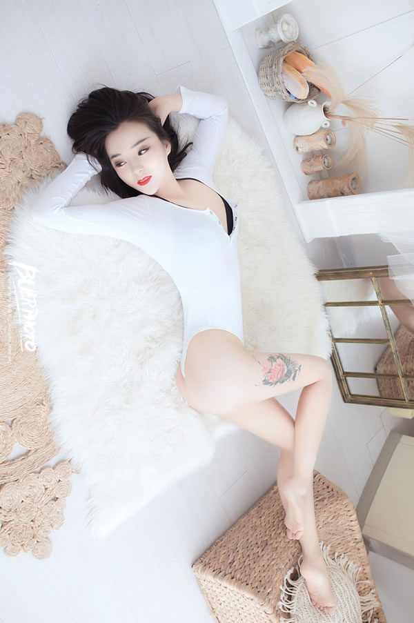 秀人女神Zoe柚柚白色连体衣白丝甜蜜写真
