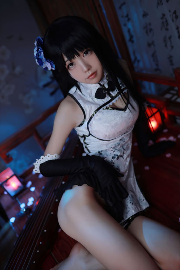推特网红橙子喵酱 - 白色绘龙旗袍