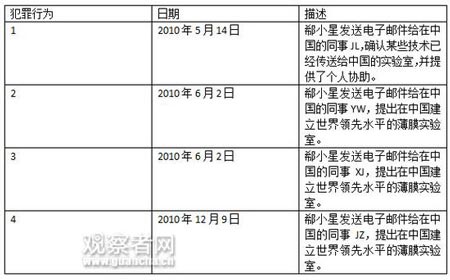 起诉书陈述郗小星的4项犯罪行为证据,均为电子邮件,其内容为郗教授表明希望在中国建立世界领先水平的薄膜实验室的意愿。