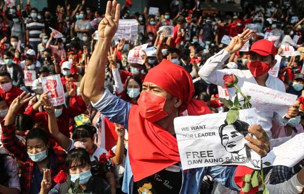 2月1日缅甸发生政治动荡后,缅甸国务资政昂山素季和其他政府高层的被捕引发了缅甸十多年来最大规模的抗议活动。动乱发生后的第21天,包括第一大城市仰光在内的多地抗议活动仍在继续,缅甸第二大城市曼德勒发生的反对军方抗议示威游行。紧急工作人员表示,警察和士兵向抗议者开枪示威,2人被枪击身亡,多人受伤,这是在两周多内最血腥的一天。
