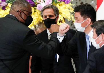 3月16日,美国总统拜登两位重要阁僚——国务卿布林肯和防长奥斯汀在抵达日本东京后,与日本外相茂木敏充及日本防卫大臣岸信夫举行了“2+2会议”。会议结束后,日美双方发布了一份旨在反对中国新《海警法》的联合声明。